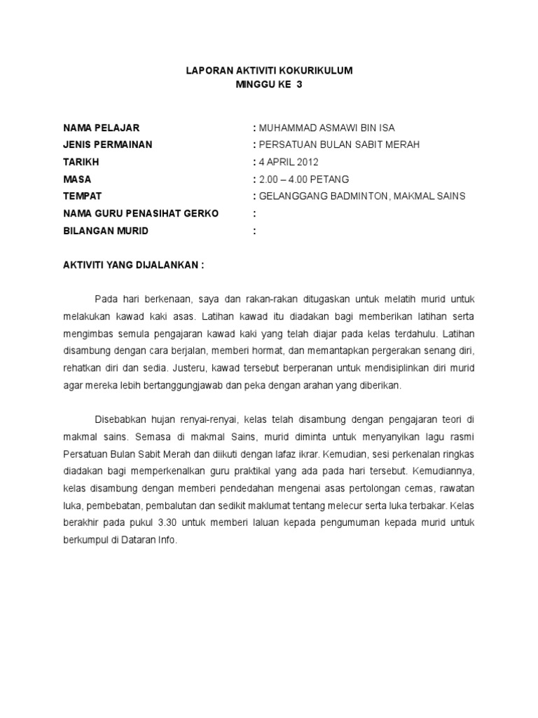 Laporan Aktiviti Kokurikulum Minggu Ke 3 Pdf