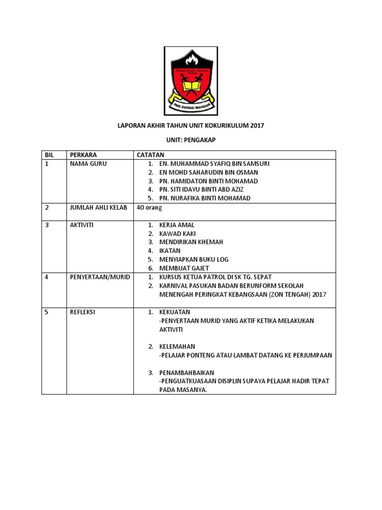 Laporan Akhir Tahun Unit Kokurikulum 2017 Pdf